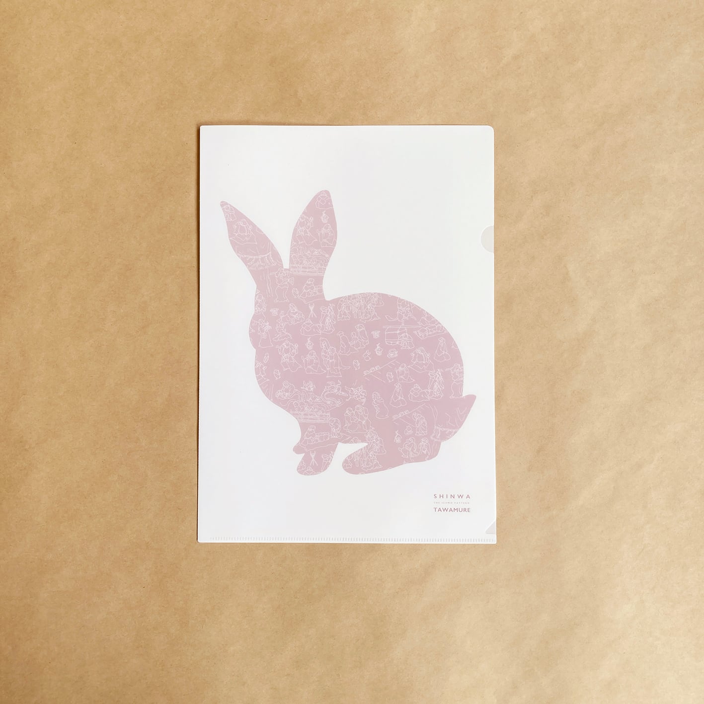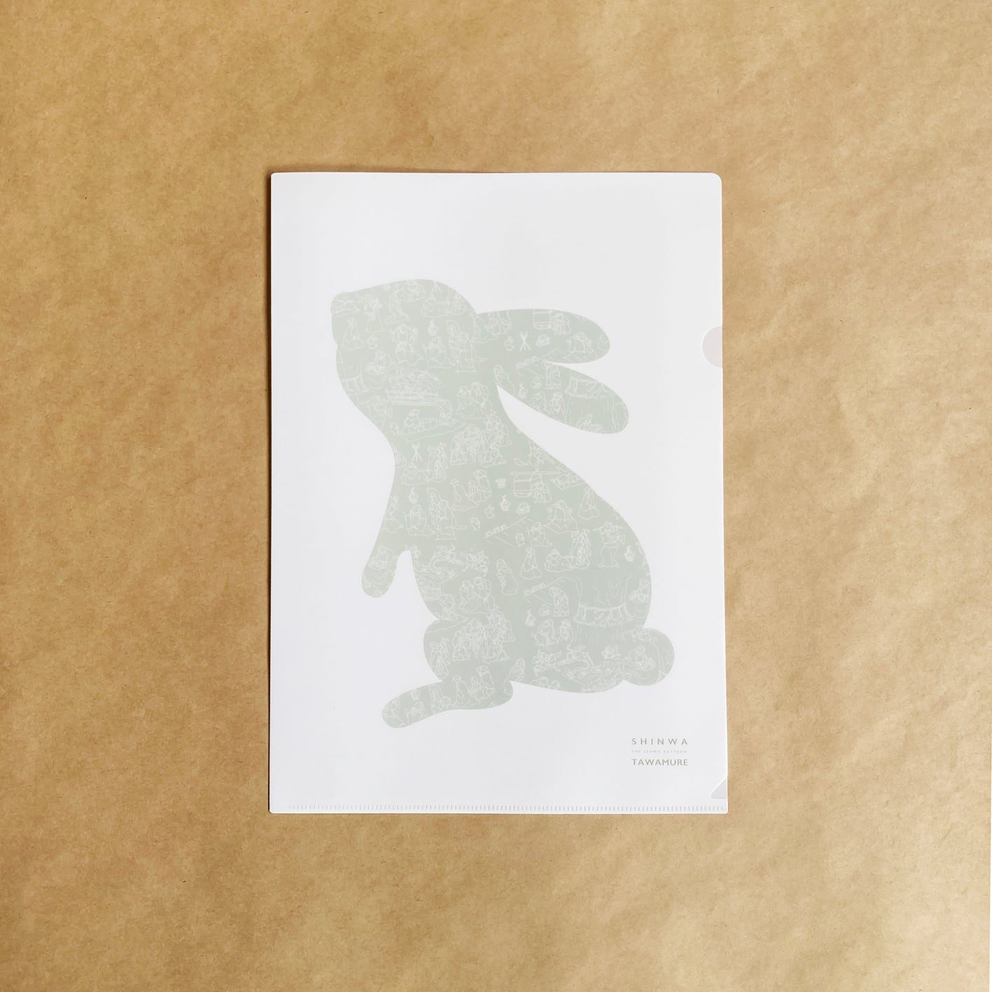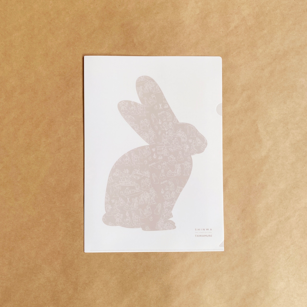 包装紙でご紹介した「シンワ・タワムレ」柄が、うさぎのシルエットの中に垣間見えます。シックでやさしい色合いの5色展開です。