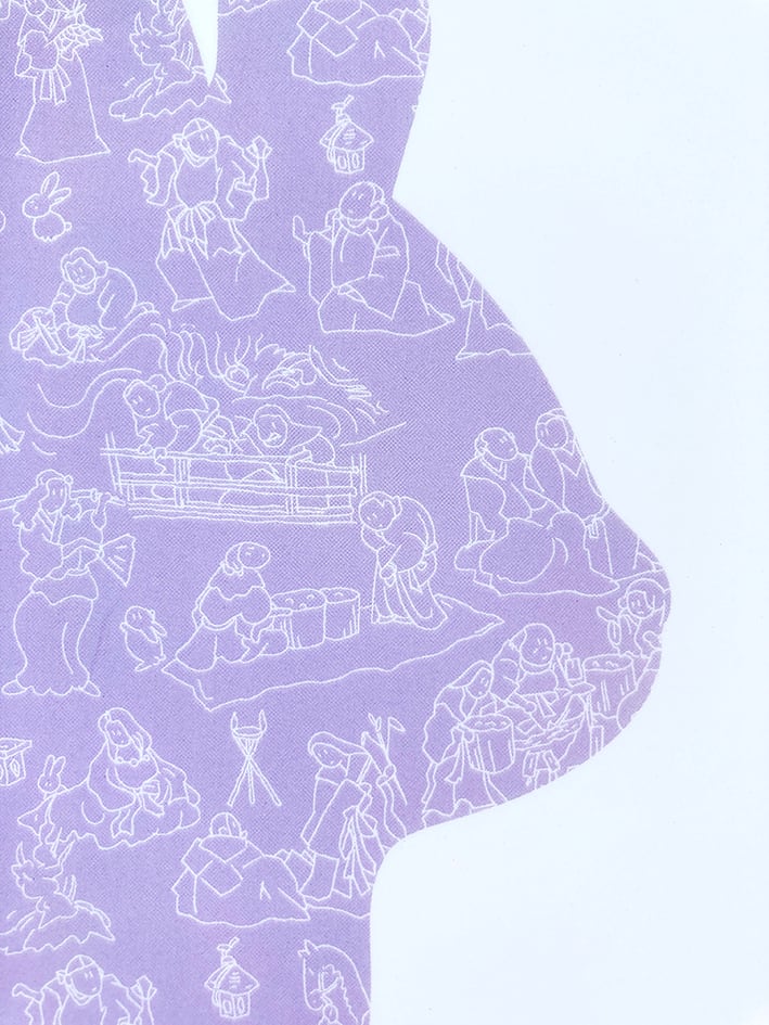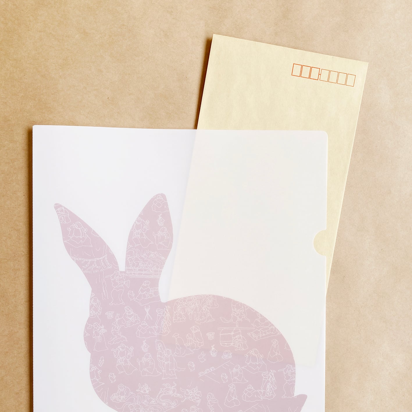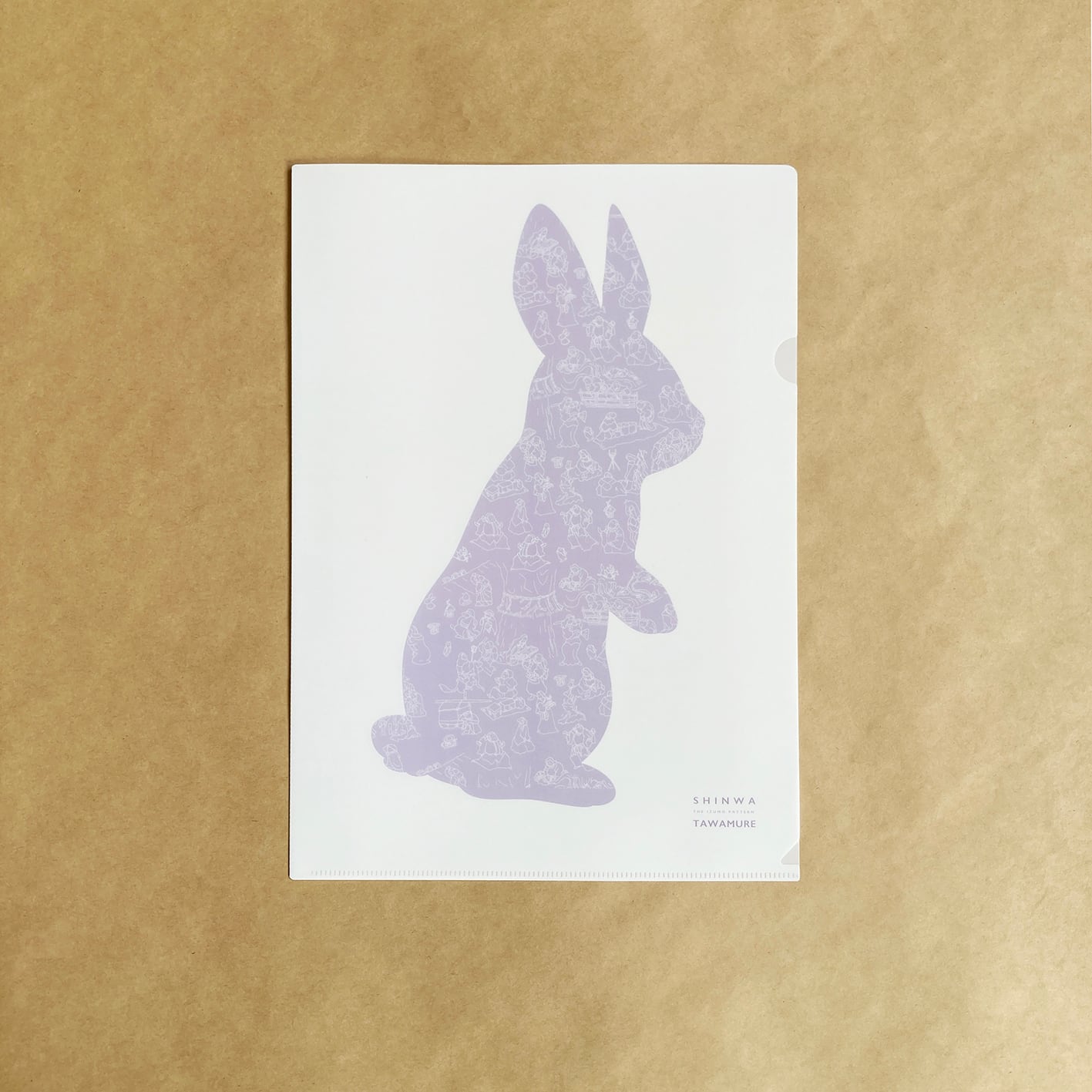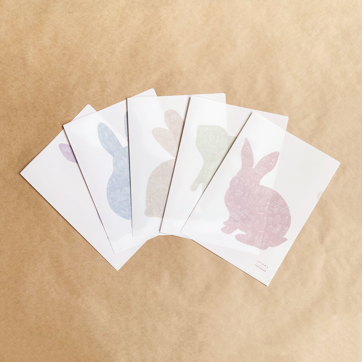 包装紙でご紹介した「シンワ・タワムレ」柄が、うさぎのシルエットの中に垣間見えます。シックでやさしい色合いの5色展開です。